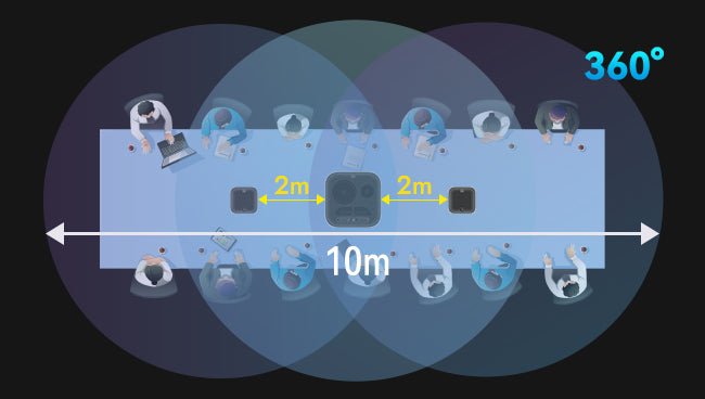 High signal-to-noise ratio digital microphone array, primary microphone and extended microphone cascade design, automatic beamforming 360° omnidirectional long-distance straightforward voice pickup, effectively improve the quality of conference room audio calls.
